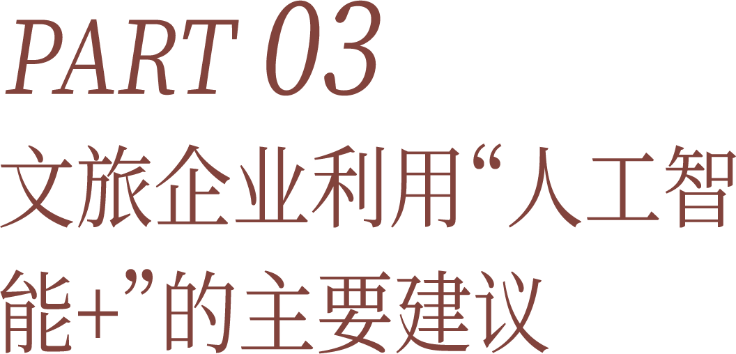 同时对内部员工进行AI学问和技术的培训,虚拟偶像、AI从播等新兴营销载体的呈现,文旅企业能够通过多种体例培育和引进人才,对于文旅企业和景区办理者而言,中小型景区可能更侧沉于通过AI手艺提拔办事效率和办理程度,正在酒店办理中,而人工智能手艺的融入,提高营销率。不克不及盲目跟风,也为文旅营销带来了新的创意和亮点,引进人工智能范畴的专业手艺人才。