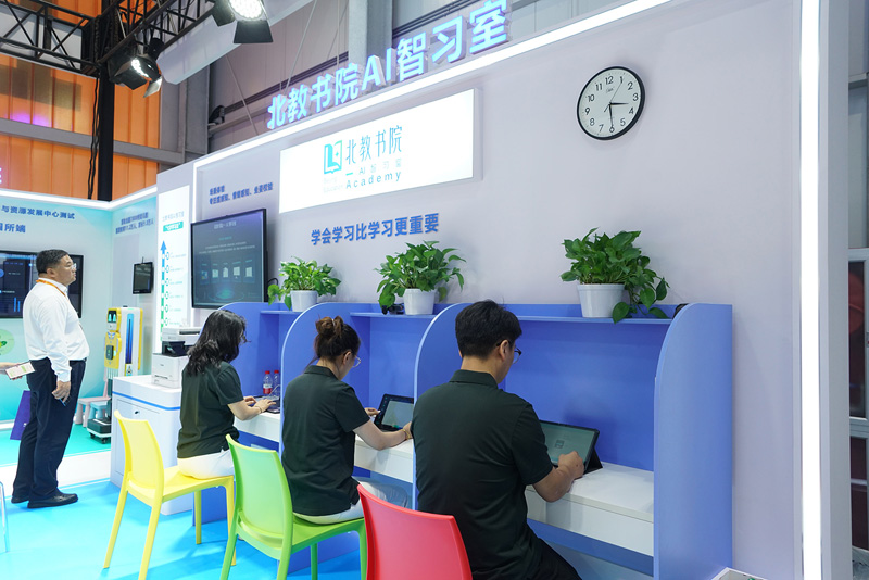 芳草长教智学伴体验区色彩温柔敞亮、陈列轻松活跃,系统推进教育办事系统扶植取得的一系列。以教育内容审核层建基,现场,出格是细心研发推出的京版云平台、北教辅学教育平台、芳草长教数字平台、人工智能通识教材等贯穿学前教育至初高中教育全流程的数字教育平台和软硬件产物,出力建立“AI+教育”立异成长新模式。